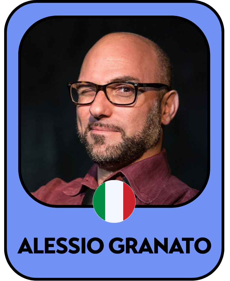 Alessio’s passion for theatre began in childhood. In 2007 he started his improvisation journey with Compagnia Maia in Latina, performing in both short and long form and later working as a teacher. He works internationally as an improv musician, actor, and trainer, collaborating with companies such as Appiccicaticci and i Bugiardini, and performing in shows including “B.L.U.E. Il Musical Completamente Improvvisato” and “Shhh! An Improvised Silent Movie”, which featured at the Edinburgh Fringe Festival. He is a regular musician and teacher at international festivals including Welcome! Improvvisazioni dal Mondo, Pandora Improv Festival, and Improvizza (Malta), and collaborates with several improv companies across Italy.